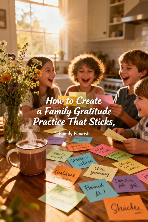 Picture your kitchen counter dotted with gratitude notes, your dinner table alive with shared appreciations, your children's eyes brightening as they recount small joys. This isn't perfection—it's a living system that bends with your family's rhythms. Some days you'll skip it entirely. That's normal. Research shows consistency matters more than intensity. Start with one micro-practice today. Let it take root. Watch how noticing goodness together reshapes your family's emotional landscape, one authentic moment at a time.